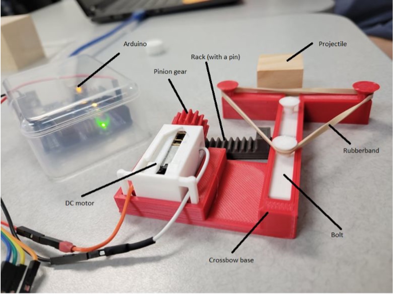 The Ballista Unit brings potential and kinetic energy to life by having students program a motor to launch a block across the room. As they set up the model, they recognize the potential energy stored within it, and when the rubber band releases and the block soars, they witness kinetic energy in action. The unit also develops students’ skills in scientific inquiry and research methods by encouraging them to ask questions, gather data, and identify patterns.